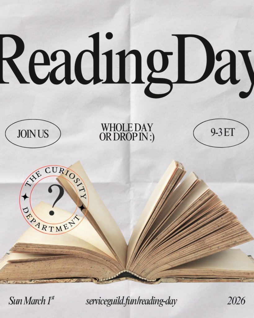 The Curiosity Department of The Service Guild will be hosting Reading Day, a daylong reading retreat and co-working space, on Sunday, March 1st, 2026.